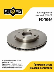 Диск тормозной передний (276x26) SUFIX FX-1046. Применение: MITSUBISHI Lancer(CS) 1.3-2.0 03> / Galant VI 2.0-2.5 96-04.
