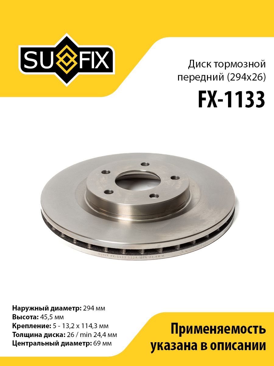 Диск тормозной передний (294x26) SUFIX FX-1133