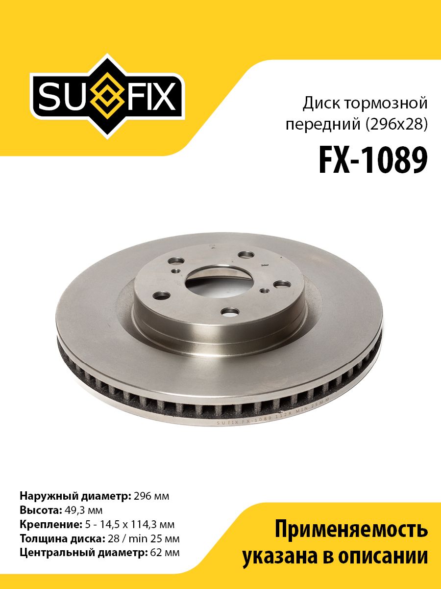 Диск тормозной передний (296x28) SUFIX FX-1089. Применение: TOYOTA Camry(V40/V50) 2.0-3.5 06> / Prius 1.8h 11> / RAV 4 III-IV 2.0-3.5 05>, LEXUS ES250-350 06>.