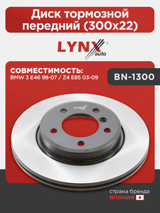 Диск тормозной передний (300x22) LYNXauto BN-1300. Для BMW 3 E46 98-07 / Z4 E85 03-09