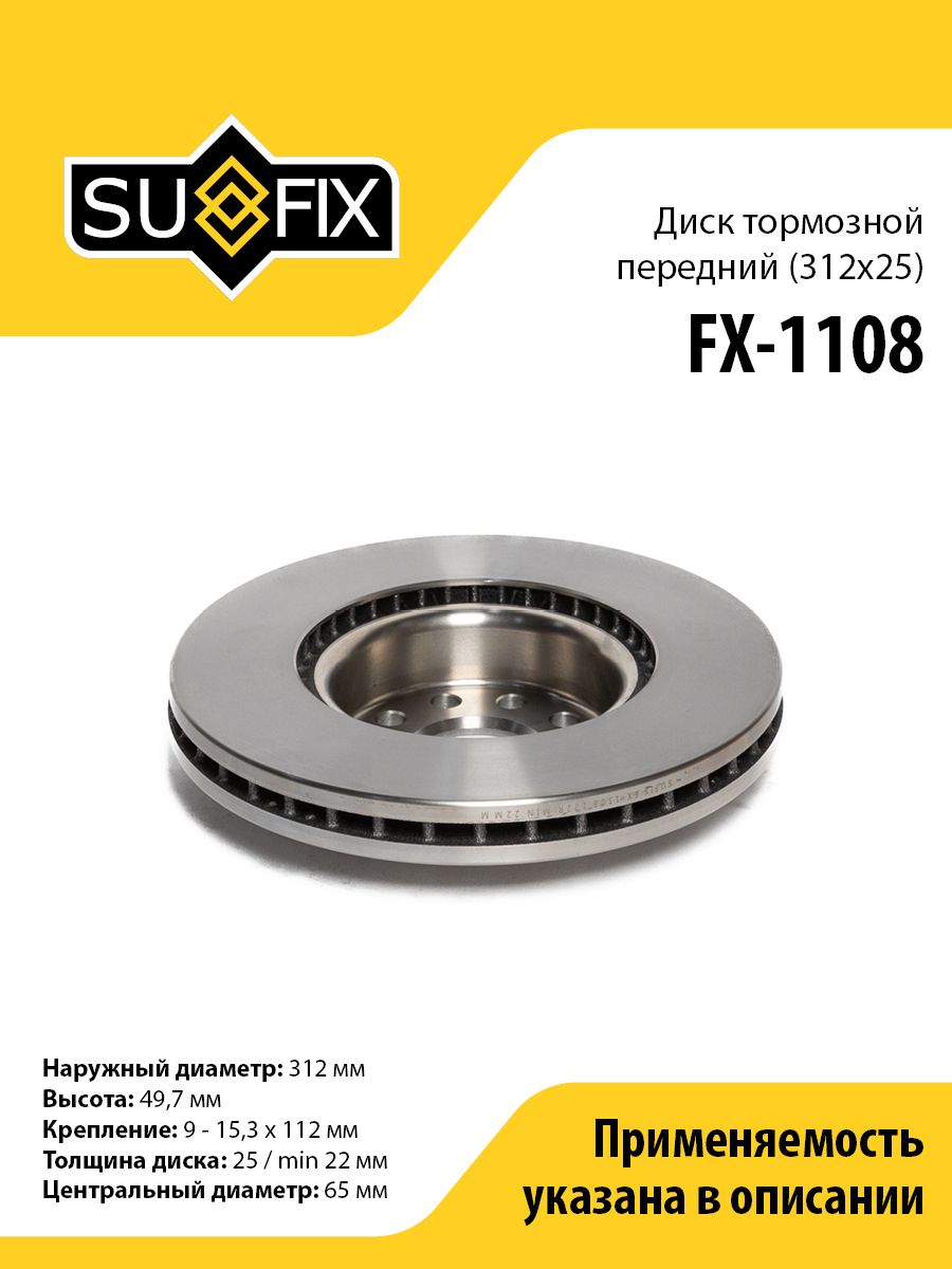 Диск тормозной передний (312x25) SUFIX FX-1108