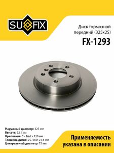 Диск тормозной передний (325x25) SUFIX FX-1293. Применение: BMW X3(E83) 03>.