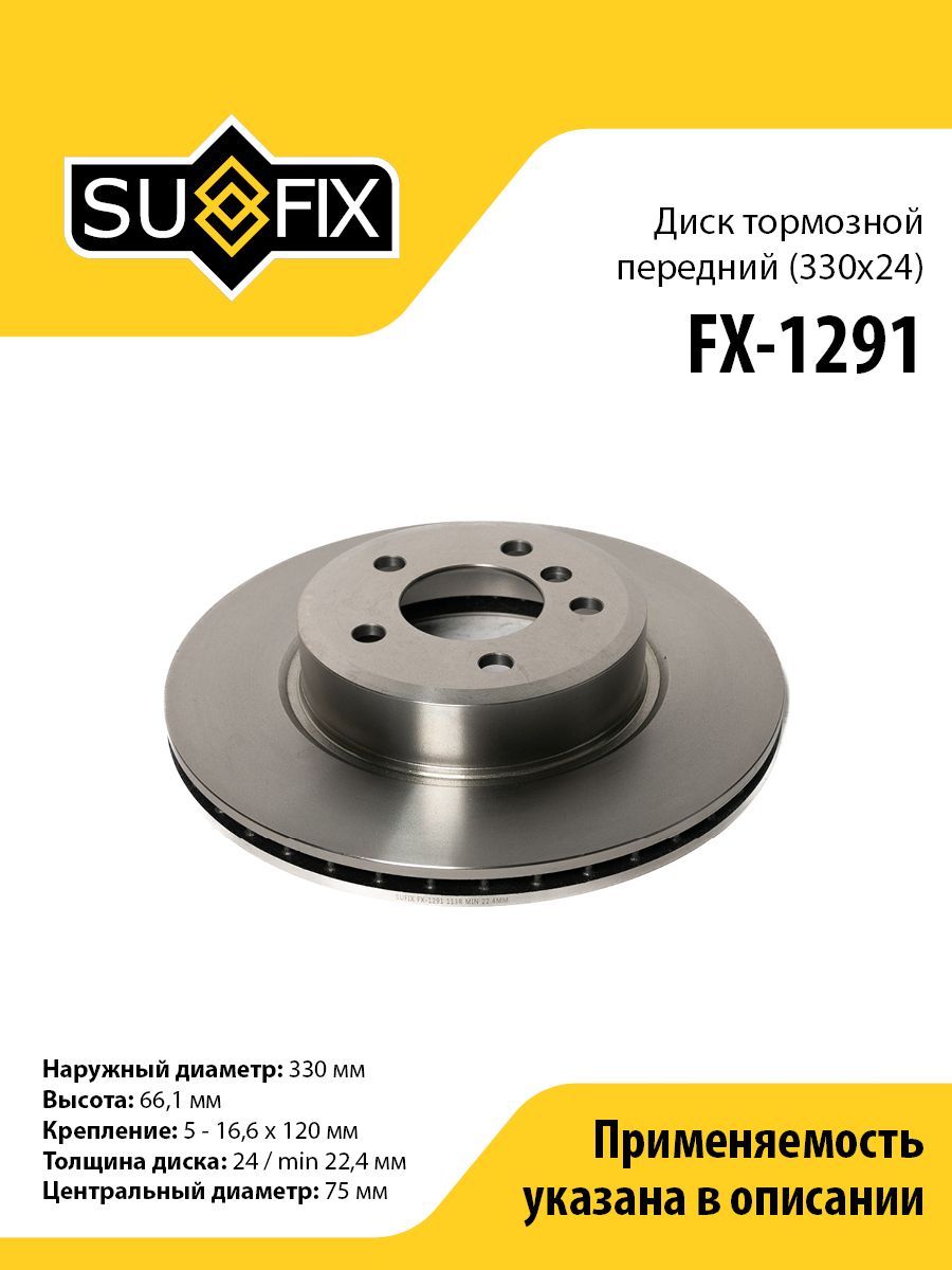Диск тормозной передний (330x24) SUFIX FX-1291. Применение: BMW 5 F10 / F11 09-16.
