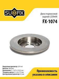Диск тормозной задний (259x9) SUFIX FX-1074