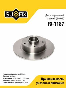 Диск тормозной задний (260x8) SUFIX FX-1187