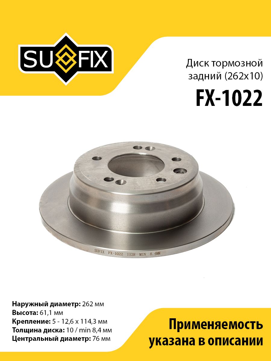 Диск тормозной задний (262x10) SUFIX FX-1022