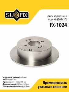 Диск тормозной задний (262x10) SUFIX FX-1024
