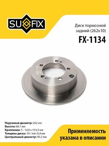 Диск тормозной задний (262x10) SUFIX FX-1134
