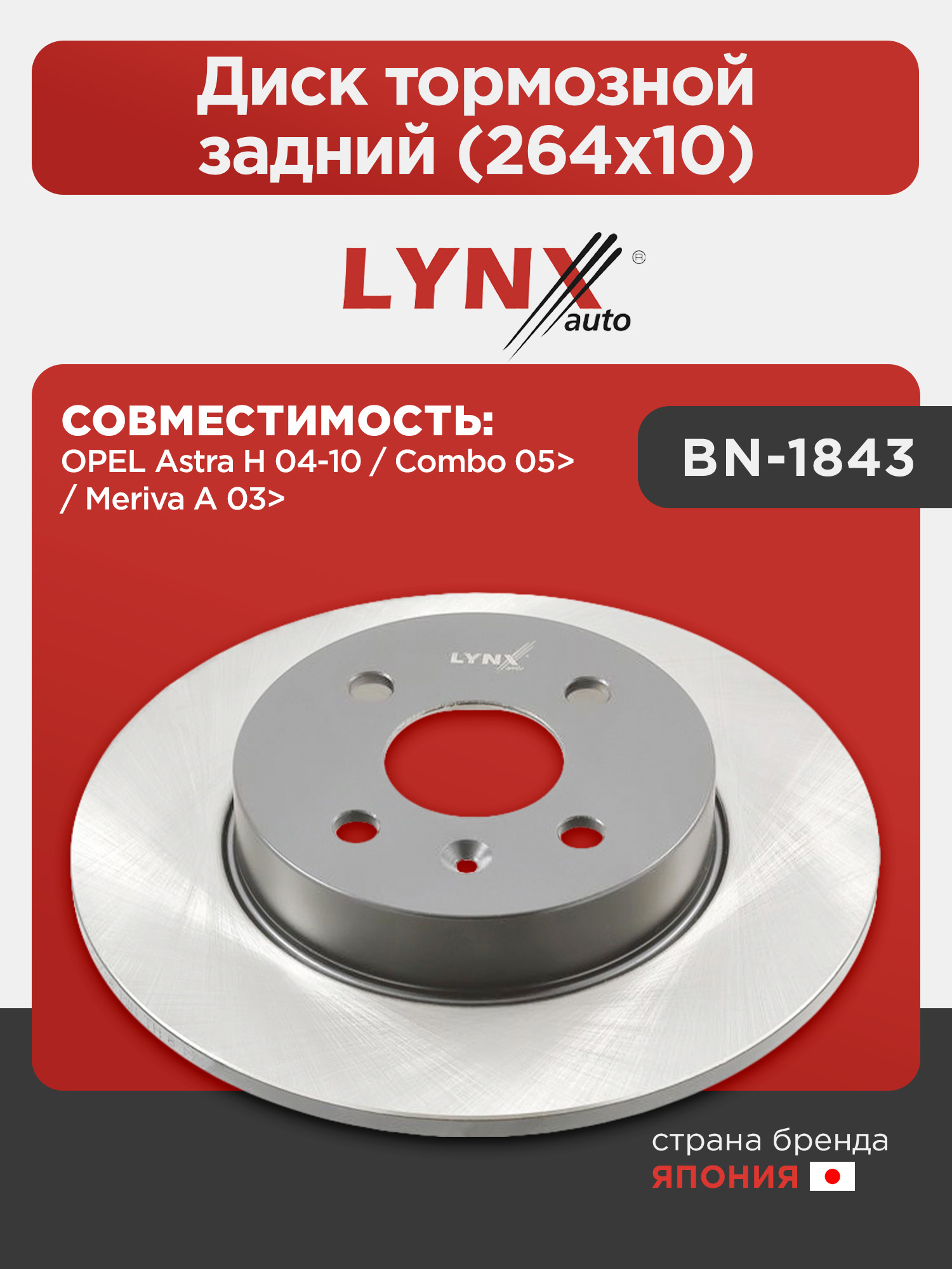 Диск тормозной задний (264x10) LYNXauto BN-1843. Для: OPEL Опель Astra(Астра) H 04-10 / Combo 05> / Meriva A 03>