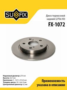 Диск тормозной задний (270x10) SUFIX FX-1072