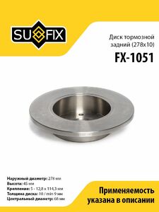 Диск тормозной задний (278x10) SUFIX FX-1051