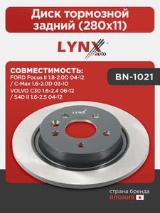 Диск тормозной задний (280x11) LYNXauto BN-1021. Для: FORD Focus II 1.8-2.0D 04-12 / C-Max 1.6-2.0D 03-10, VOLVO C30 1.6-2.4 06-12 / S40 II 1.6-2.5 04-12