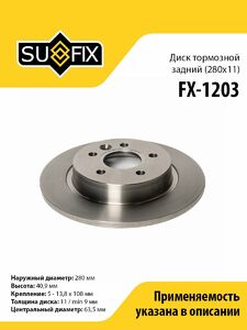 Диск тормозной задний (280x11) SUFIX FX-1203