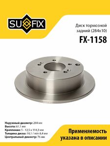 Диск тормозной задний (284x10) SUFIX FX-1158