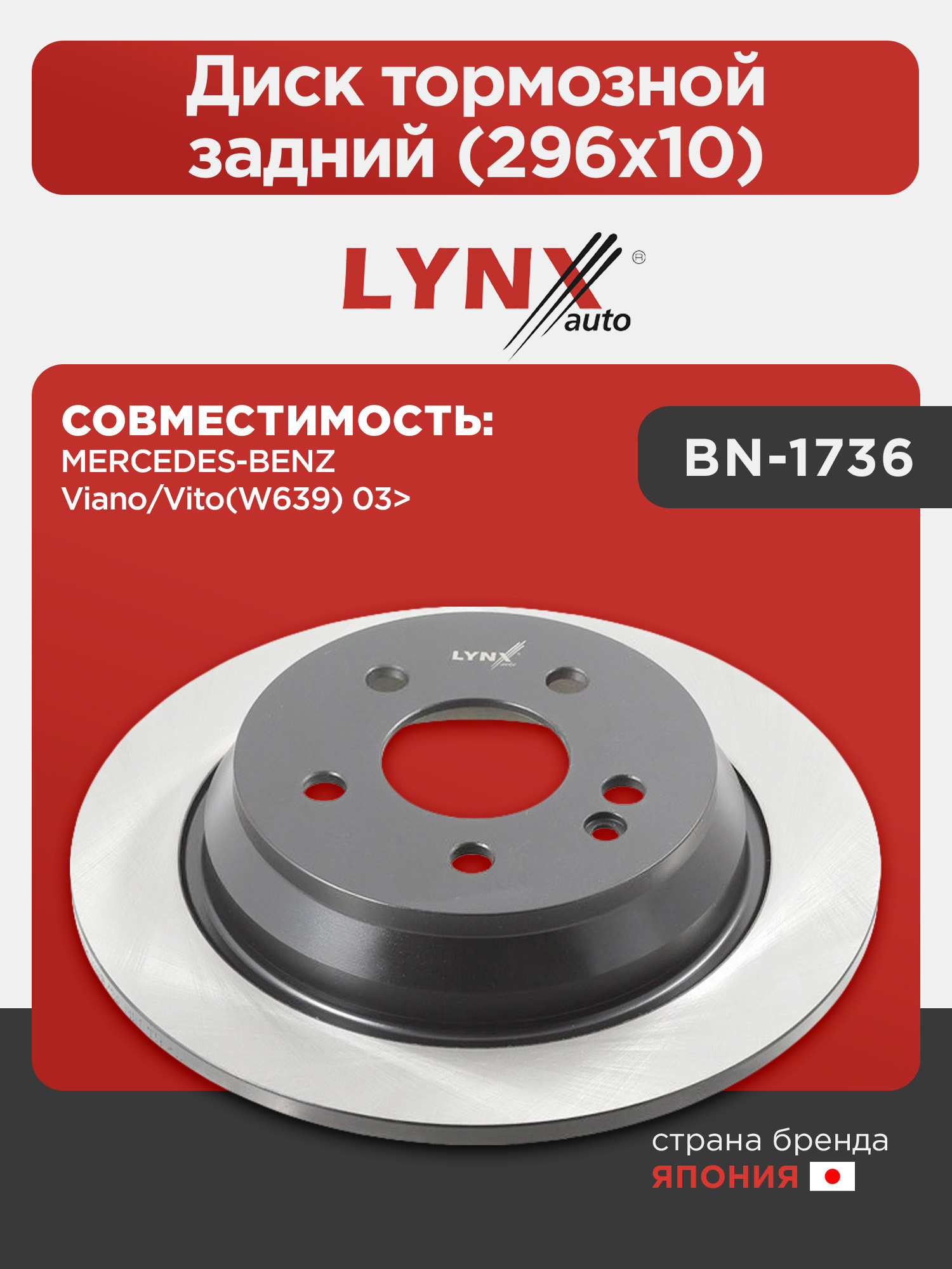 Диск тормозной задний (296x10) LYNXauto BN-1736. Для: MERCEDES Мерседес-BENZ Viano(Виано)/Vito(Вито)(W639) 03>