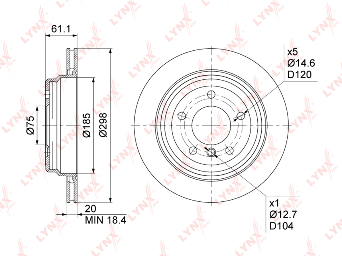 Диск тормозной задний (298x20) LYNXauto BN-1010. Для BMW 5(E39) 2.0-4.4 95-03