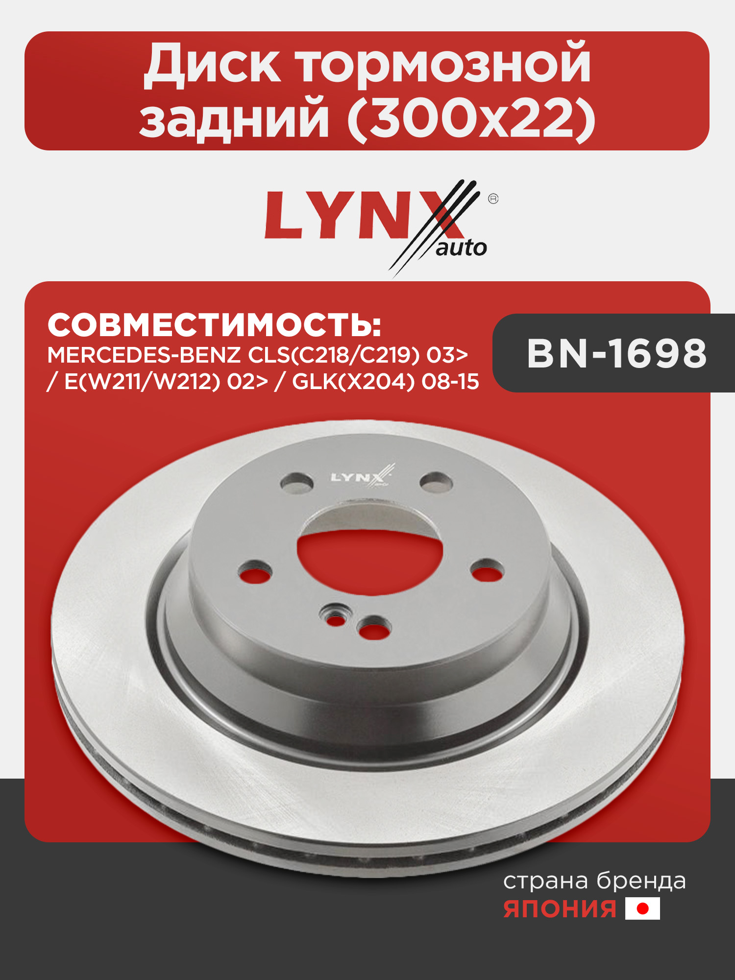 Диск тормозной задний (300x22) LYNXauto BN-1698. Для: MERCEDES Мерседес-BENZ CLS(C218/C219) 03> / E(W211/W212) 02> / GLK(X204) 08-15