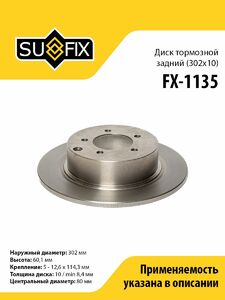 Диск тормозной задний (302x10) SUFIX FX-1135