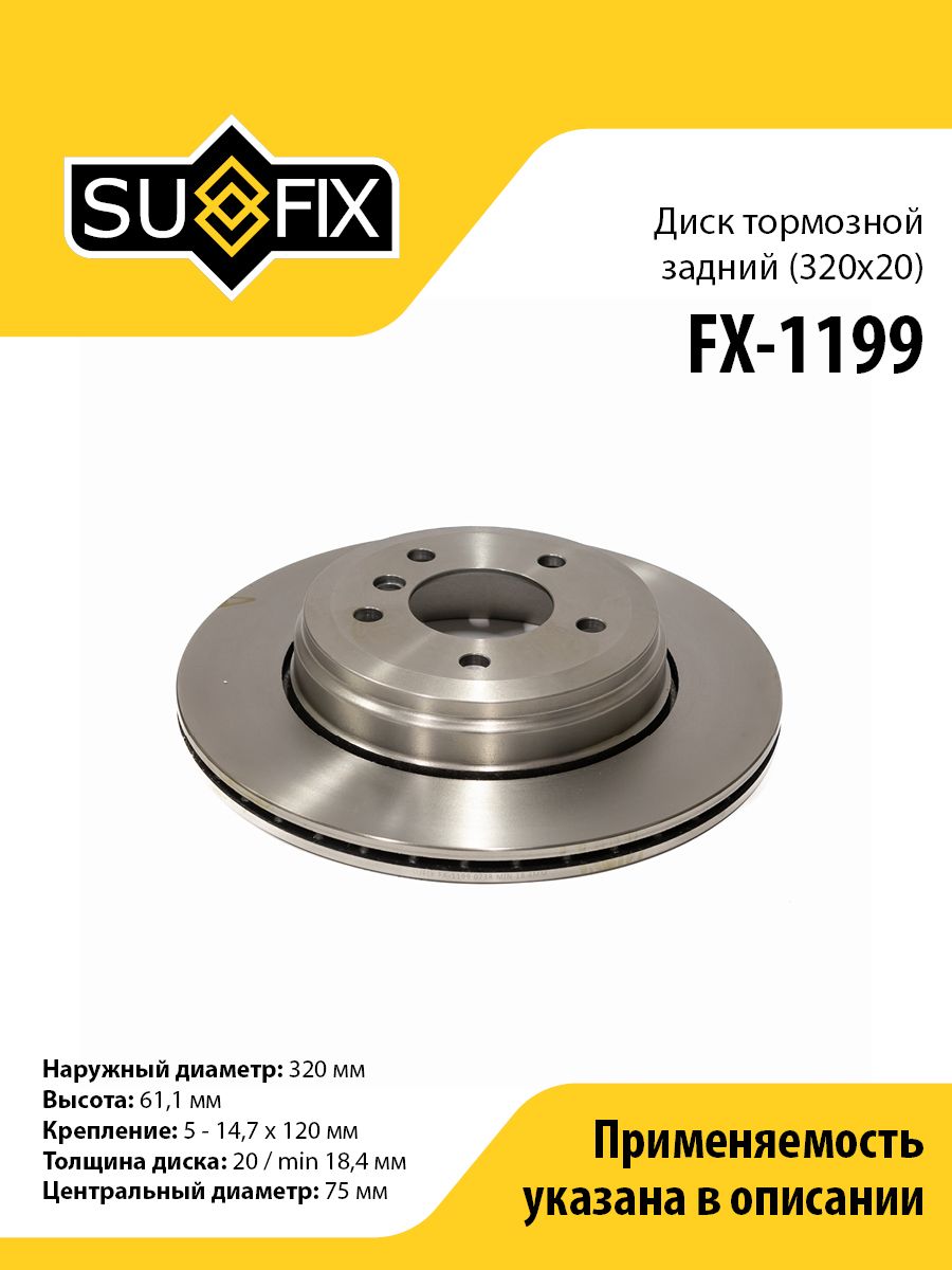 Диск тормозной задний (320x20) SUFIX FX-1199. Применение: BMW 5(E60/61) 2.0-3.0 04-10 / 6(E63 / 4) 3.0 04-10.