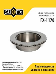 Диск тормозной задний (332x18) SUFIX FX-1178