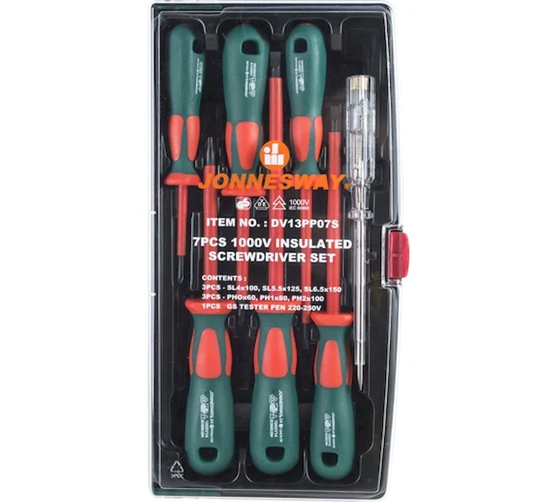 JONNESWAY DV13PP07S Набор отверток стержневых диэлектрических, 7 предметов