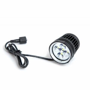 Велосипедная фара Inton KF5000 - фара повышенной яркости построена на пяти мощных светодиодах фирмы CREE XM-L 2. Чип CREE XM-L2, применяемый в автомобильном освещении, является одним из наиболее ярких и долговечных на сегодняшний день, срок службы превышает 50.000 часов. Корпус изготовлен из алюминиевого сплава (6061-T6) со степенью защиты IP65. По корпусу равномерно расположены тепло отводящие ребра, а на тыльной стороне кнопка включения и переключения режимов.