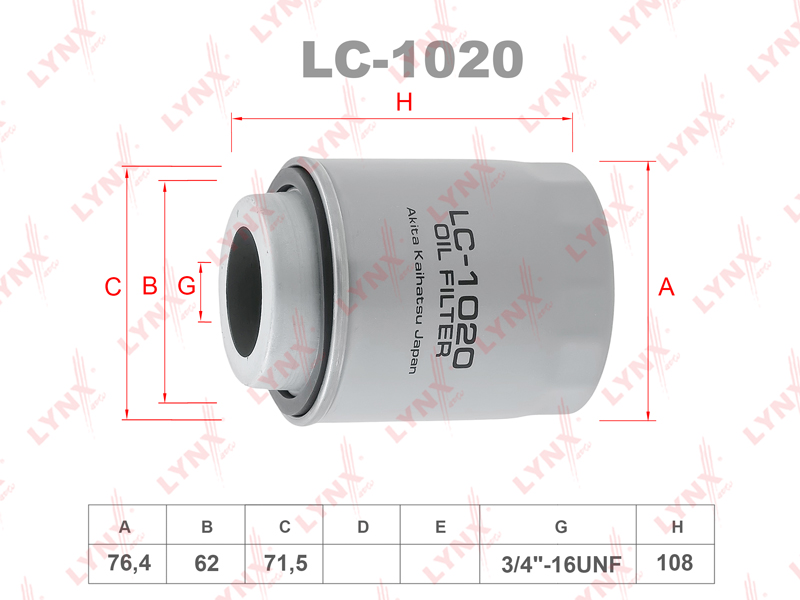 Фильтр масляный LYNXauto LC-1020. Применение: FAW Besturn X40 1.6 16>
