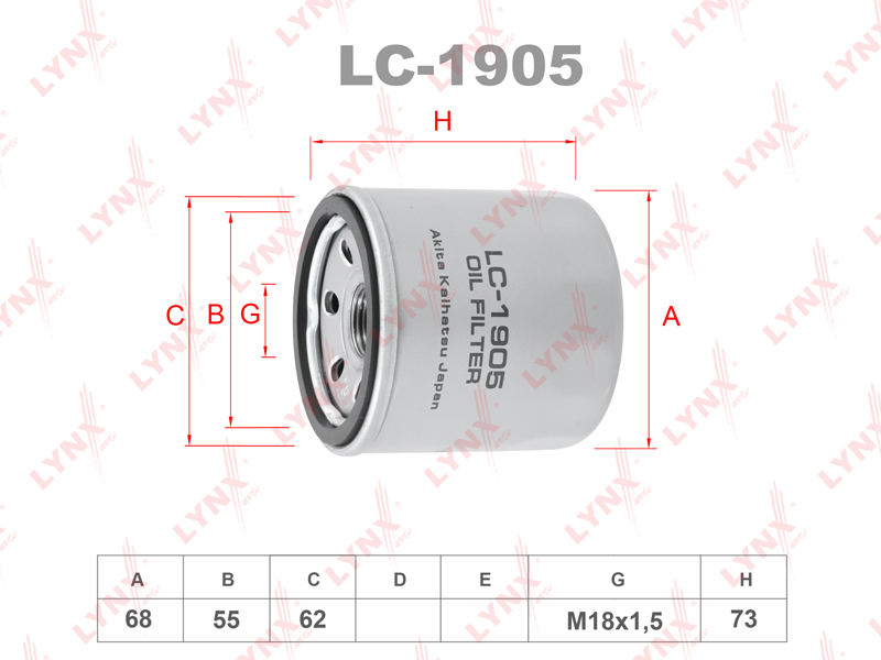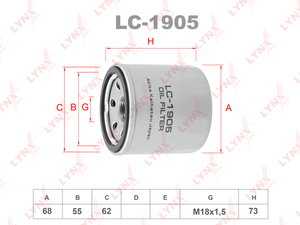 Фильтр масляный LYNXauto LC-1905. Применение: CHEVROLET Aveo 1.2 08> / Spark 0.8-1.2 05>