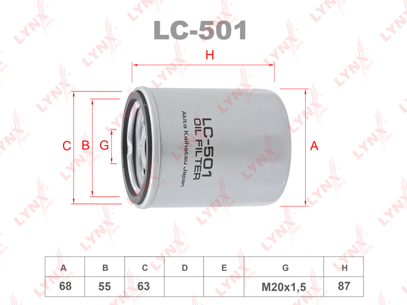 Фильтр масляный LYNXauto LC-501. Применение: SUBARU Forester(SH/SK) 2.0-2.5 10> / Impreza(GJ/GP) 1.6-2.0 11> / Legacy V-VI 2.0-2.5 12> / Outback(BR/BS) 2.5 13> / XV(GP) 1.6 12>, TOYOTA GT 86(ZN6) 2.0 12>