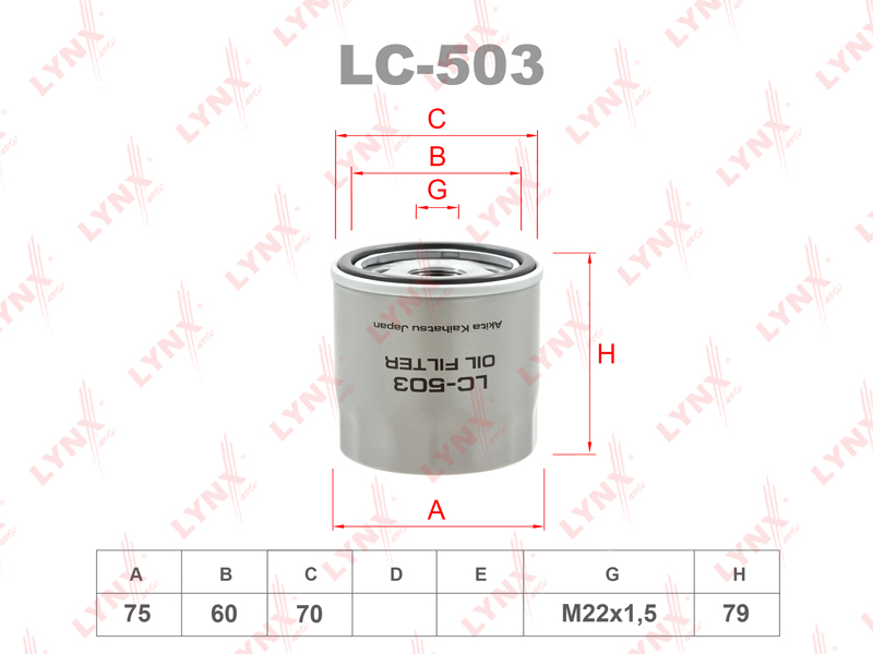 Фильтр масляный LYNXauto LC-503 для CITROEN Jumper 2.2D 06-19,FORD Tourneo Custom 2.2D 12>/Transit(FD) 2.2D-2.4D 00>/Transit Tourneo 2.2D 94-14,LAND ROVER Dfeneder 2.2D 90-16,PEUGEOT Boxer 2.2D 06-19