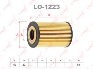 Фильтр масляный LYNXauto LO-1223. Применение: MERCEDES-BENZ A140-210(W168) 97> / Vaneo(W414) 1.6-1.9 02>