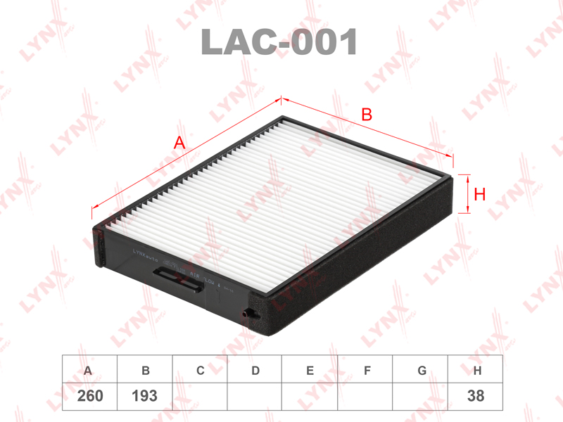 Фильтр салонный LYNXauto LAC-001 для HYUNDAI Santa Fe 01>/Sonata 98>/Trajet 00>/XG 98>,KIA Sorento 02>