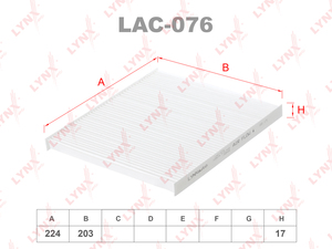 Фильтр салонный LYNXauto LAC-076 для MOSKVICH 3 23>,JAC J7 20>,HYUNDAI Genesis 08>/Tucson 04>,KIA Carens 05>/Rio II 05>/Sportage II 04>