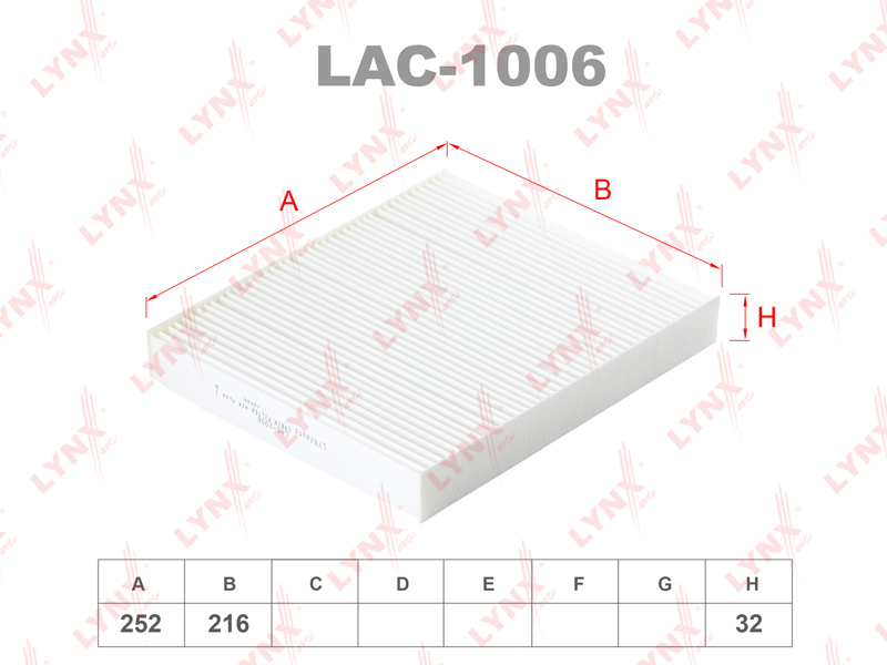 Фильтр салонный LYNXauto LAC-1006. Применение: SKODA Fabia I-II 99> / Roomster 07>, VOLKSWAGEN Polo 01> / Polo Sedan 10>