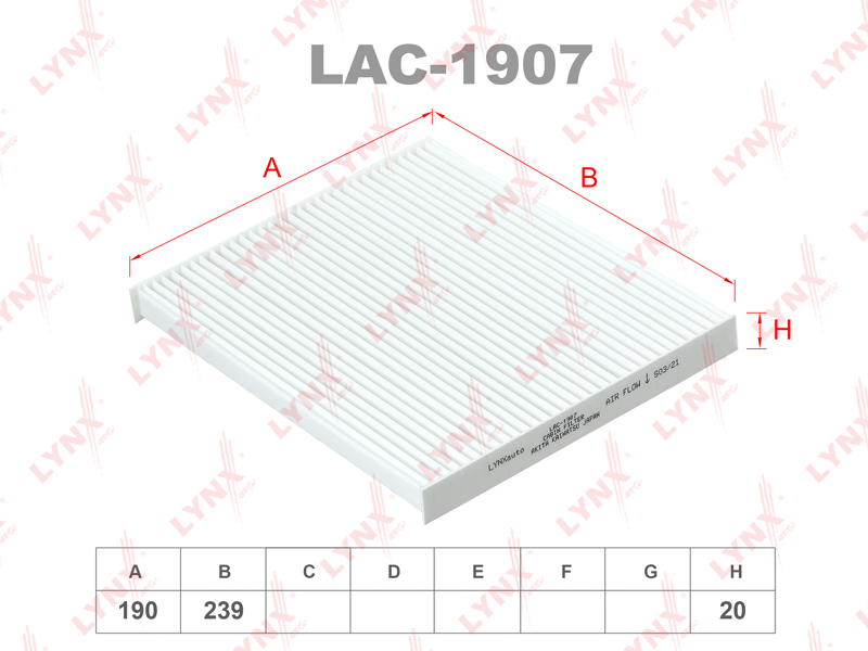 Фильтр салонный LYNXauto LAC-1907. Применение: HYUNDAI i30 1.6 11> / ix35 1.6-2.0D 10> / Tucson 2.0-2.7 04>, KIA Sportage 1.6-2.0D 10>