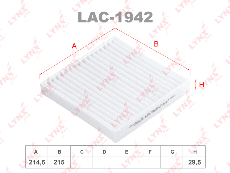 Фильтр салонный LYNXauto LAC-1942 для INFINITI M(Y51) 10>/Q70(Y51) 10>,NISSAN Fuga(Y51) 09>