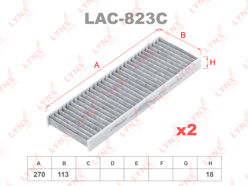 Фильтр салонный угольный (комплект 2 шт.) LYNXauto LAC-823C. Применение: CITROEN C-Elysee 1.2-1.6 12>, PEUGEOT 301 1.2-1.6 12>