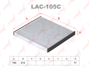 Фильтр салонный угольный LYNXauto LAC-105C. Применение: CHERY Tiggo 05>, LIFAN Solano 08> / X60 11>, HYUNDAI Solaris I 10>, KIA Rio III 11>, TOYOTA RAV4 I-III 01> / Yaris 99> / Prius 00-04