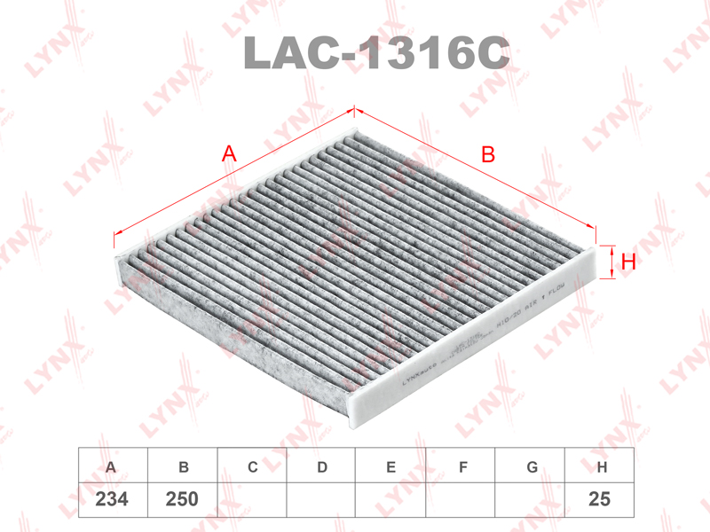 Фильтр салонный угольный LYNXauto LAC-1316C. Применение: CITROEN Jumper II 06>, FIAT Ducato II 06>, PEUGEOT Boxer II 06>