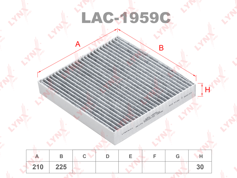 Фильтр салонный угольный LYNXauto LAC-1959C для HYUNDAI Elantra VII 20>/Santa Fe IV 18>/Sonata VIII 20>/Staria 21>/Tucson(NX) 20>,KIA Sorento IV 20>/Sportage V 21>