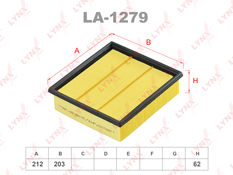 Фильтр воздушный LYNXauto LA-1279 для ALFA ROMEO Mito 1.3-1.6 08-18,FIAT Doblo 1.6-2.0 10>/Punto 1.3-1.6 05>,OPEL Combo 1.6-2.0 19 12>