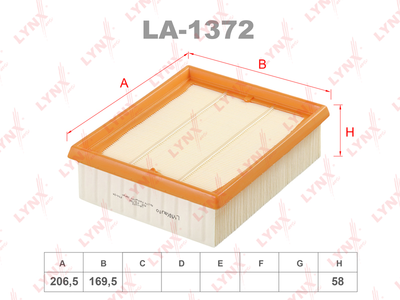 Фильтр воздушный LYNXauto LA-1372. Применение: CITROEN Xsara 1.8-2.0 98-12, PEUGEOT 206 1.9-2.0 98>