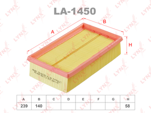 Фильтр воздушный LYNXauto LA-1450 для NISSAN Micra(K12) 1.5 05-10/March (K12) 1.5 05-10,RENAULT Clio II-III 1.5-2.0 05>/Modus 1.5 04>