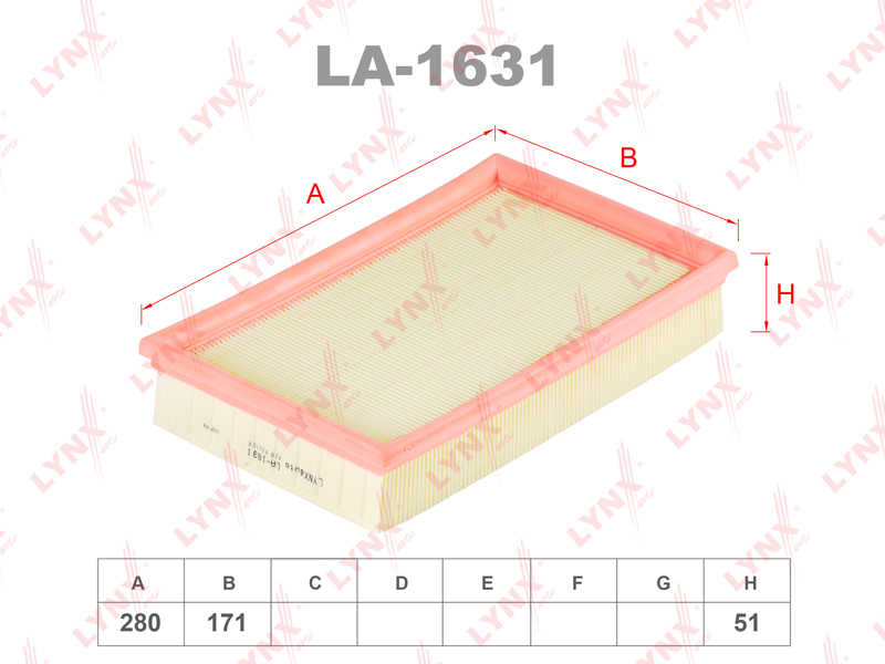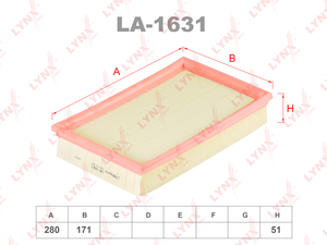 Фильтр воздушный LYNXauto LA-1631 для FORD Focus II 1.8D-2.0D 04>/C-Max 1.8D-2.0D 03-07,VOLVO C30 2.0D 06-12/S40 II 1.6D-2.0D 05>