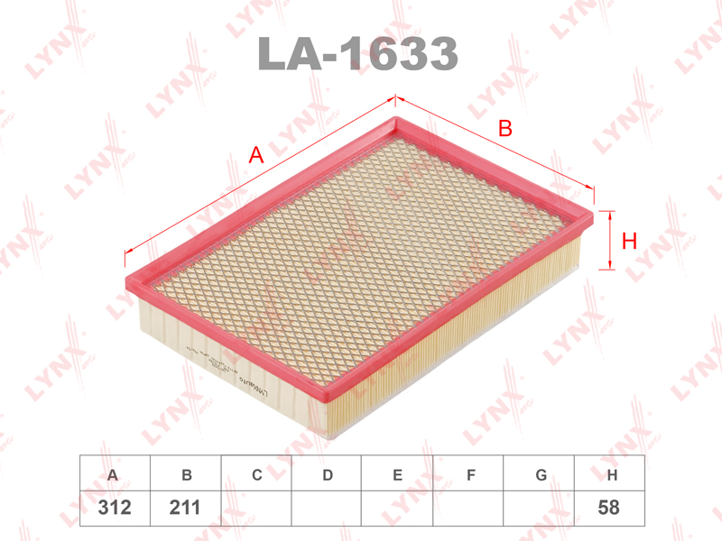 Фильтр воздушный LYNXauto LA-1633 для FORD Galaxy I 1.9D-2.8 95>,VOLKSWAGEN Sharan 1.8-2.8 95>