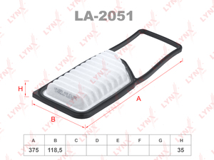 Фильтр воздушный LYNXauto LA-2051. Применение: DAIHATSU Move Conte 0.7 08>, TOYOTA Pixis Space 0.7 11>