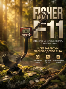 Fisher F-11 – металлоискатель для старта, но и прибор с явным запасом. Такой металлоискатель можно купить, не особо ущемляя семейный бюджет, но в то же время понимая, что он прослужит не один год и что его не надо будет менять через месяц, так как вы его уже «переросли».