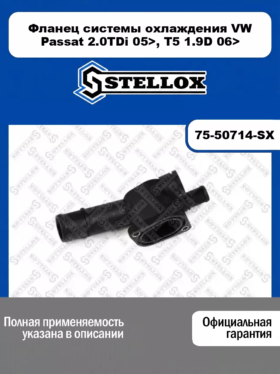 Фланец системы охлаждения VW Passat 2.0TDi 05>, T5 1.9D 06> 75-50714-SX