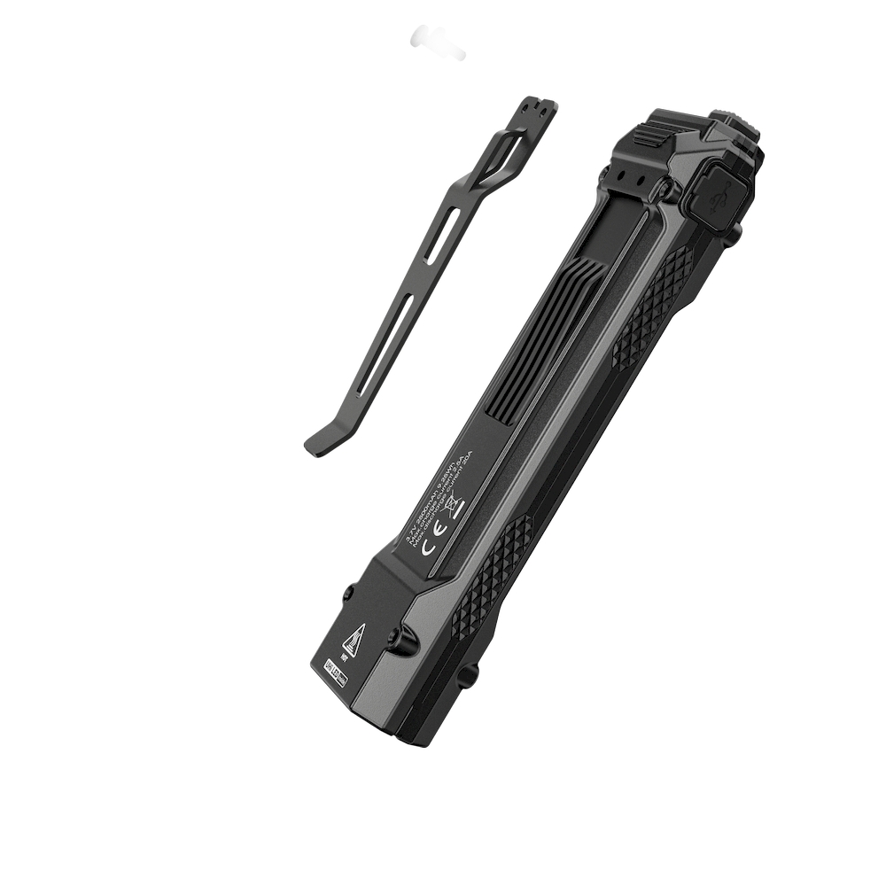 Корпус изготовлен из алюминиевого сплава с твёрдым анодированием HA III и усилен нержавеющей стальной оболочкой с PVD-покрытием. Противоскользящая текстура и эргономичная форма обеспечивают надёжный хват даже в экстремальных условиях. Фонарь имеет степень защиты IP54 (защита от пыли и брызг) и выдерживает падение с высоты до 1 метра.