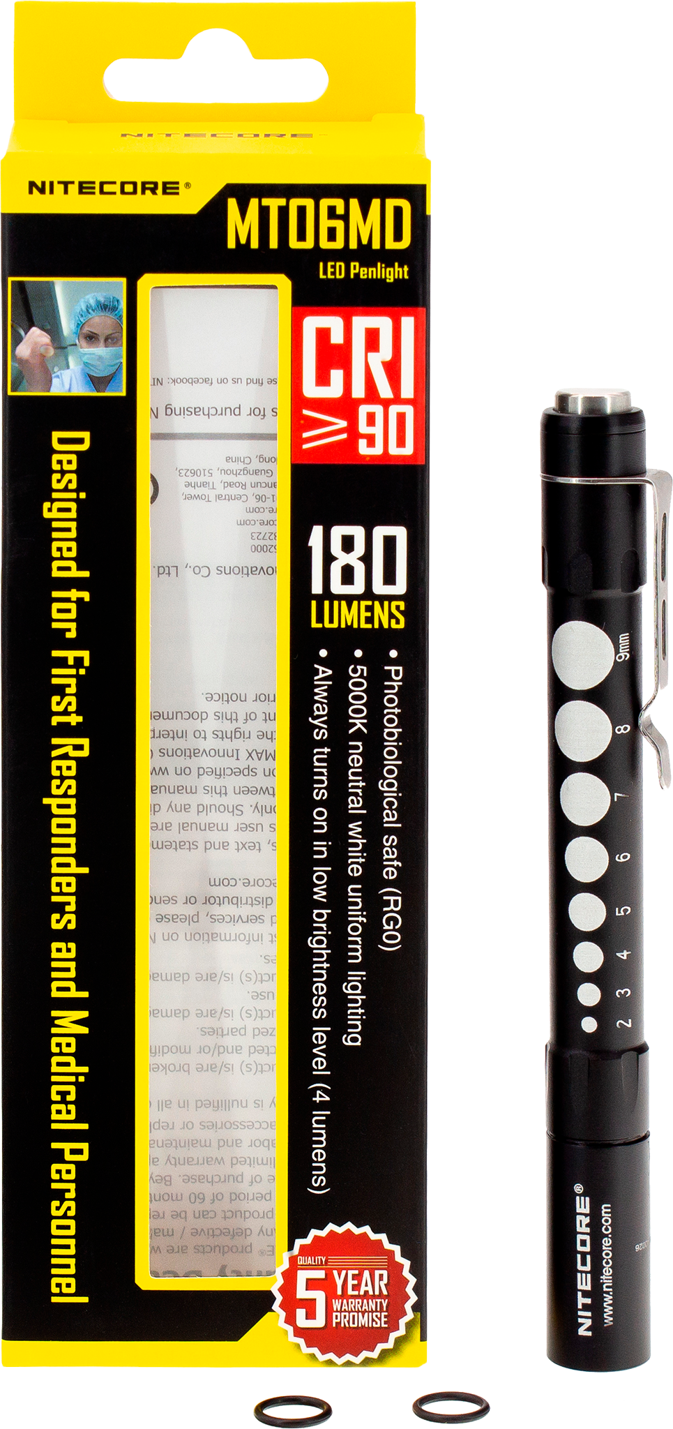 MT06MD - это модификация уже знакомого практичного в применении фонаря MT06, разработанная специально для использования медицинским персоналом и медиками скорой помощи. Теперь MT06MD работает на светодиоде Nichia с цветопередачей, приближенной к естественному солнечному свету.